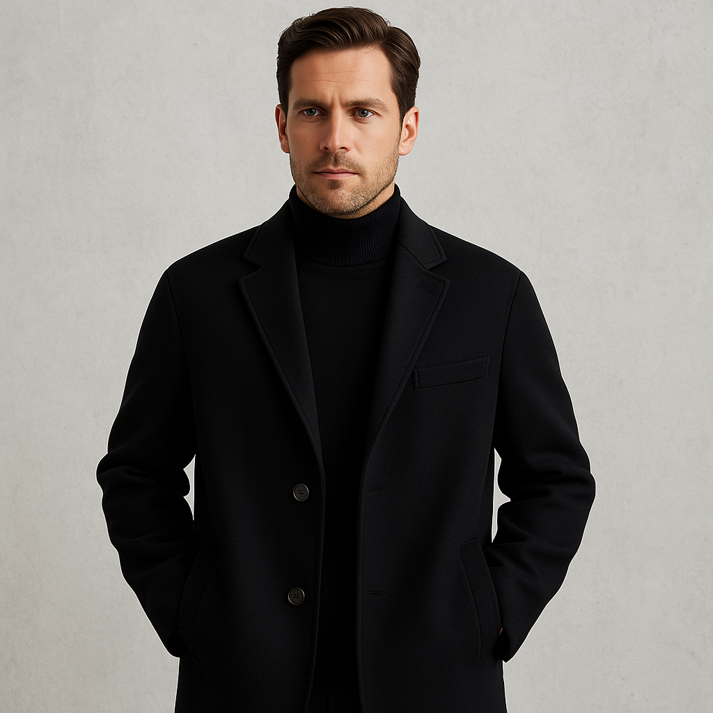Zweireihiger Herren Mantel, Eleganter Wintermantel aus doppellagiger Wolle